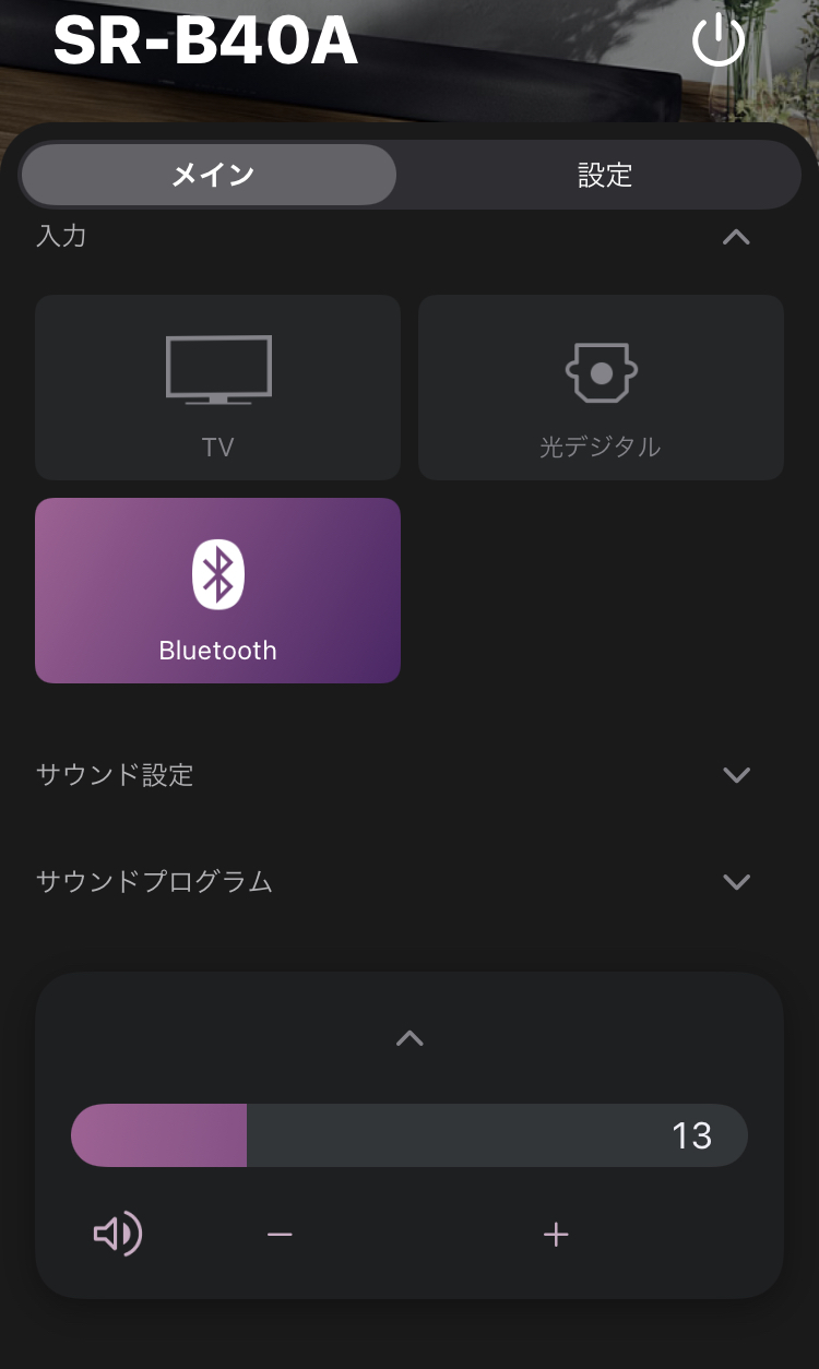 ただし、「SR-B40A」は専用アプリ「Sound Bar Remote」を使って、さらに細かなサウンド設定が可能です。